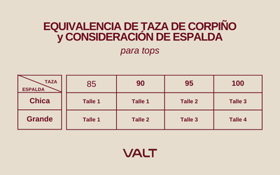 • Equivalencia con taza de corpiño tradicional y consuderación de espalda.